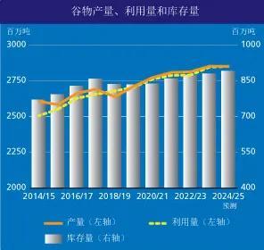 2024 /25年度世界谷物消费量最新预报数为28.52亿吨,同比微涨0.2%,较7月份的预测下调了470万吨。