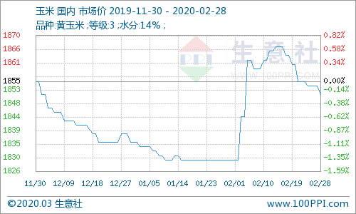 进入2月下旬,随着运输逐渐恢复产区玉米供应逐渐增加,国内玉米市场供应偏紧局面有所缓解,深加工企业库存得到一定补充后纷纷下调玉米收购价格,港口及销区玉米市场价格随之小幅偏弱调整,国内玉米市场价格整体继续小幅弱势下行。