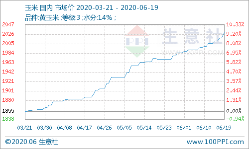 据生意社监测,本周国内玉米价格持续走高,周初3等黄玉米均价为2011.43元/吨,周末均价为2030.00元/吨,上涨0.92%。