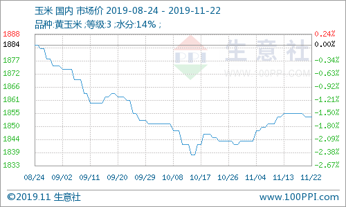 据生意社监测,本周国内玉米价格小幅震荡前行,周初3等黄玉米均价为1855.71元/吨,周末均价为1854.29元/吨,小幅下跌0.08%。