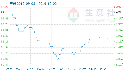 12月1日玉米商品指数为82.29 信息来源:生意社 作者: 更新时间: 2019-12-03 字体大小: 【大】 【中】 【小】 12月1日玉米商品指数为82.29,与昨日持平,较周期内最高点111.90点(2014-09-09)下降了26.46%,较2017年02月28日最低点67.73点上涨了21.50%。(注:周期指2011-09-01至今) 当前隐藏内容需要支付0元(RNB) 已有 人支付 支付查看 升级会员 上一篇: 国储、运费齐发,玉米市场跌势或暂缓 下一篇: 2019年11月28日淀粉糖现货价格 相关推荐 快讯2:最新(8.19)凭祥正贸越南淀粉行情......! 最新(9.13)越南各地鲜薯收购价格 CFT供应阶段性趋紧 玉米价格继续回暖 分析预测:本周(8月18—24日)国内木薯淀粉行情走势 淀粉行业上周要闻(8月11-17日) 广西凭祥部分淀粉品牌正贸报价(8.19) CFT终端企业补库较为谨慎 玉米市场行情震荡不止 最新(9.13)越南各地鲜薯收购价格 东兴边贸部分二、三线品牌木薯淀粉报价(8.28) 泰国木薯淀粉在广州经销商的报价(8.28)