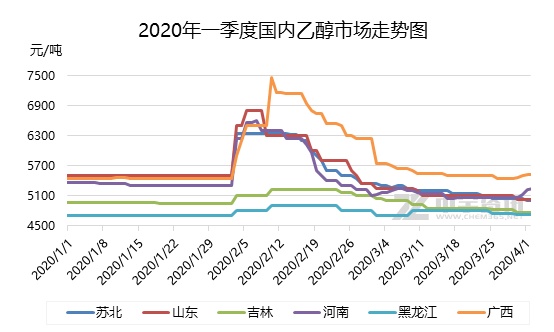 一季度行情波动简述:此番价格的大幅涨跌,根本缘由仍离不开需求二字,因新冠疫情爆发,鉴于75%消毒酒精的能杀死病毒的特殊性,多数酒企转产消毒酒精,加之市场运输受限,贸易流通性减弱,导致95%酒精现货紧缺,由此带来了各地价格的上扬,而随着消毒需求已逐步回归冷静,下游用户多转为消耗库存,而传统需求方面,主要下游醋酸乙酯开工负荷不高,白酒春节期间销售不佳,备货量萎缩,整体需求面对市场支撑力度减弱,高价难以得到维持,同时随着货源流通的加快,东北货快速南下,市场供应压力大幅缓解,多方利空因素制约下,价格快速回落。