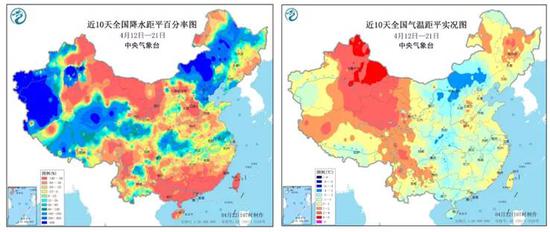 (图:全国降水及气温距平 中央气象台)