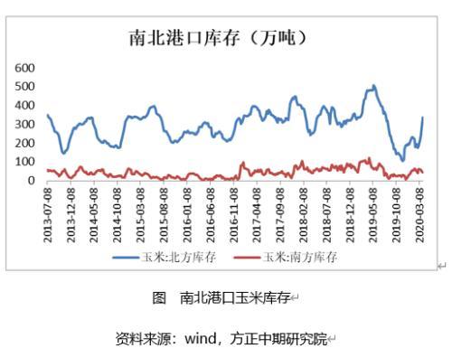 1、基层余粮见底,粮源多集中在中间环节:3月份,国内公路运输费用大幅减少,贸易商积极入市收粮,基层玉米售粮进度加快,玉米售出两成有余,基层剩余的一成粮食多用易于储存的方式储存起来,挺价惜售。从粮源分布的情况来看,深加工企业玉米库存较去年同期较少35%,饲用企业多随采随用为主,目前粮源主要集中在中间流通环节,短时期国内玉米挺价销售,市场目前在等待临储玉米价格及需求的进一步的指引。
