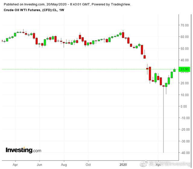 WTI原油期货周线图,来源:英为财情Investing.com