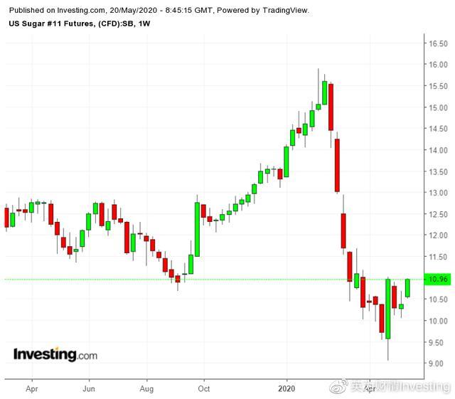 美国糖期货周线图,来源:英为财情Investing.com