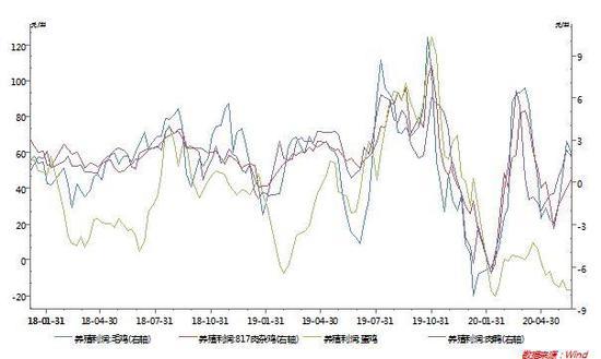下游养殖利润持续走弱盈转亏,压制饲料原料玉米涨幅。截至6月19日,毛鸡、817肉杂鸡、蛋鸡和肉鸭养殖利润分别报2.03元/羽、0.36元/羽、-16.73元/羽和1.8元/羽,整体来看上半年肉禽养殖利润整体状况不佳,维持在盈亏平衡点附近,其中进入5月后蛋鸡养殖亏损持续加深,下游养殖利润欠佳,压制饲料玉米价格涨幅空间。