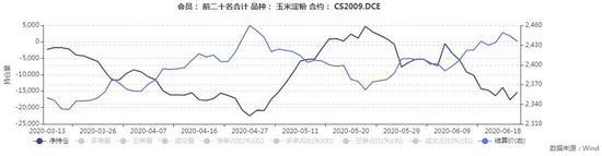 大连商品玉米淀粉09合约前20名净持仓变化图