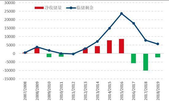 图:国家临储玉米收抛储情况(单位:万吨)