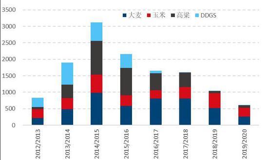 图:玉米及相关替代品进口量(单位:万吨)