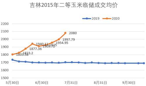 玉米的上涨在预料之中,因为今天是周四,又到了拍卖的日子。回顾从5月22日拍卖开始以来的成交情况,除提高保证金、限制央企资金支持的6月25和7月2日两周成交均价有所回落外,其余各周期、现货价格均是高歌猛进,溢价幅度之高令人咋舌。以本周吉林2015年二等粮成交均价2080元/吨计算,溢价达到390元,溢价幅度23%。出库成本2190,集港成本2330,到山东成本2430,到华南成本2480。