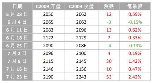 策略上,09合约2245的价格已经和7月中的拍卖成本持平,但是之后几周的而拍卖可能火爆依旧,即使09合约不继续上涨,因为没有低价粮源供应,显著回调的空间也比较小。而01合约和05合约,已经出现了相对近月滞涨的现象。在新粮上市、陈粮大量结转出库、可能的稻麦拍卖以及进口到港的多重因素下,继续上涨的空间可能有限。如有近月多单和9-1正套,建议止盈出场,关注远月合约上可能的回调。