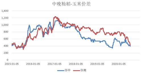 2.玉米价格高企,对小麦、稻谷价差缩小