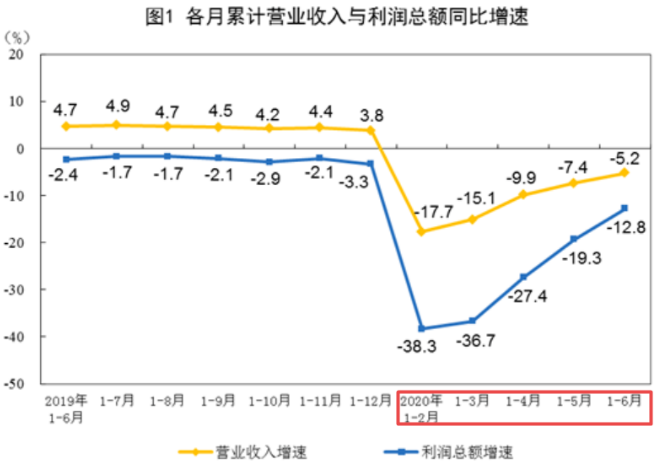 7月27日,国家统计局发布了2020年1-6月份全国规模以上工业企业利润情况。数据显示,全国规模以上工业企业实现营业收入46.31万亿元,同比下降5.2%;实现利润总额25114.9亿元,同比下降12.8%。