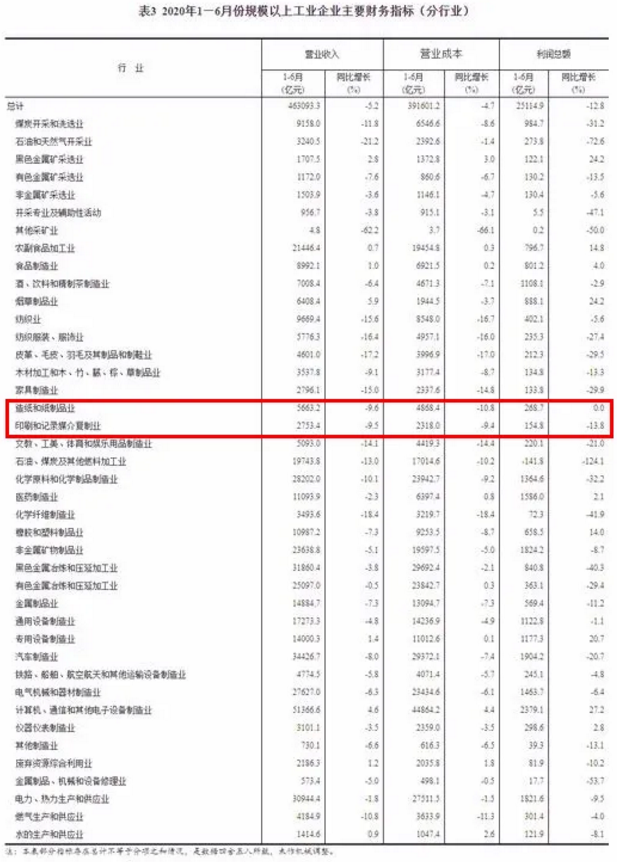 不过,随着疫情的基本控制,造纸和纸制品业、印刷和记录媒介复制业运行情况也逐步出现好转,最有利的证明便是,两大行业的在今年1-6月份的营收、利润降幅相比今年1-5月份,均有收窄。这也意味着,今年下半年,各行业的经济数据有望继续回升。