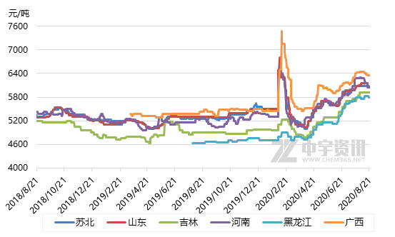 前期国内乙醇市场在成本支撑下持续上涨,但下游需求相对清淡,支撑力度不足,且由于环保及检修等因素,主力大厂陆续检修,国内供应相应收紧,市场供需两弱,持货商库存压力减轻,低价出货意愿不强,报盘持续偏强震荡。