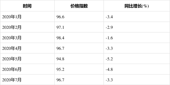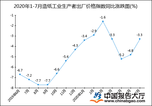 2020年1-7月造纸工业生产者出厂价格指数统计分析