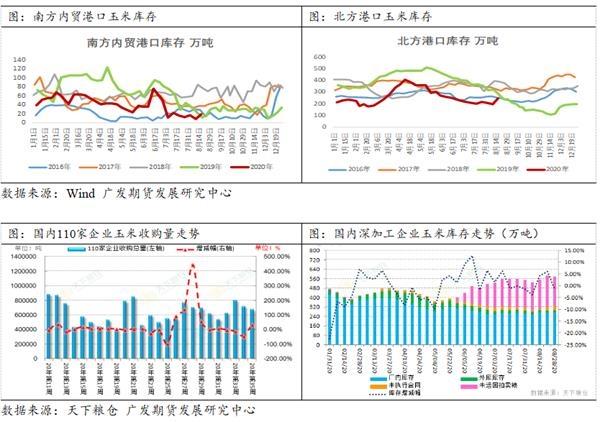近期国内玉米价格高位震荡,截至8月28日,全国玉米均价2248元/吨,山东地区深加工企业玉米收购价大多在2310-2426元/吨,较8月初下跌180元/吨左右。辽宁锦州港口玉米690-700容重,报2170-2180元/吨,较8月初下跌120-130元/吨;广东港口二等玉米报价2330元/吨,较8月初下跌140元/吨。港口库存维持低位,截至8月17日,北方港口玉米库存246.4万吨,同比减少31.5万吨,降幅11.34%;南方港口玉米内贸库存18.1万吨,同比增加7.1万吨,增幅64.55%。玉米2101合约价格自7月下旬开始强势运行,8月中旬一度突破2320元/吨,近期有所回落。