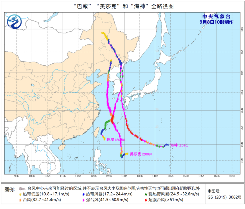 附表:台风“巴威”、“美莎克”、“海神”统计对比分析表