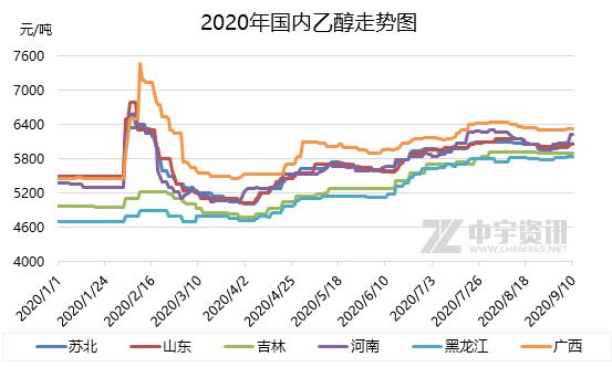 进入9月份,国内乙醇需求有所提升,下游白酒厂开始备货,化工方面入市相对积极,需求支撑下国内乙醇成交坚挺,报盘震荡走高。
