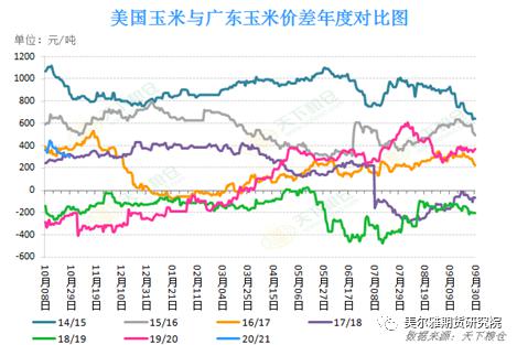 目前我国对进口玉米仍是采用关税配额的形式,今年的720万吨配额已经用完,但如果后续我国的玉米价格持续攀高不降,进口玉米可能被用于调控市场。在这种前提下,玉米的内外价差,也是衡量我国玉米价格是否虚高的一个重要尺度。