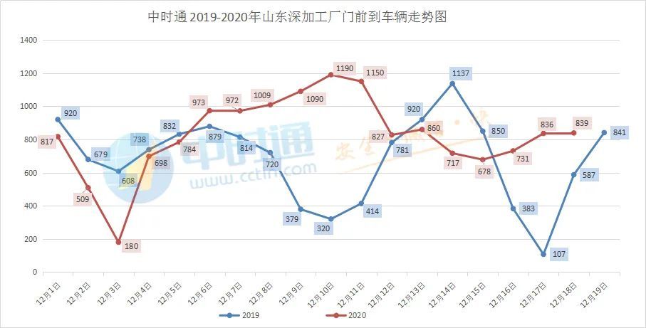 今日山东深加工厂门前到车辆839辆!到车辆依旧高位,玉米市场继续偏弱运行!