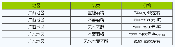 广西糖蜜酒精报盘7300元/吨;广西木薯酒精报价6900-7280元/吨;无水乙醇价格7900-7950元/吨。广西地区木薯乙醇弱行,企业报价低位,糖蜜乙醇市场平稳,但听闻糖蜜乙醇市场有低价成交。