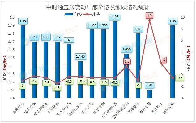 除此之外,今日也有上调信息, 河南孟州厚源生物在下调多日后今日上涨1.5分,价格执行1.455元/斤, 东北地区 今日再次传来上涨信息,黑龙江龙江阜丰涨2分,价格执行1.37元/斤;吉林燃料乙醇上调9.5分,价格执行1.41元/斤。目前全国深加工厂平均价格指数在1.397元/斤左右,山东平均指数依旧较高,在1.484元/斤左右,目前最高价为山东昌乐英轩1.545元/斤!