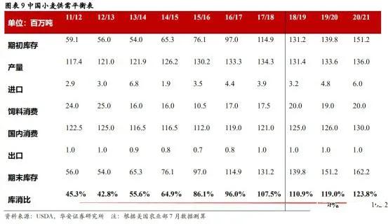 从上图我们可以看出中国小麦、大米的库销比一直在逐年上升的过程中,所以我们的口粮并不存在短缺。