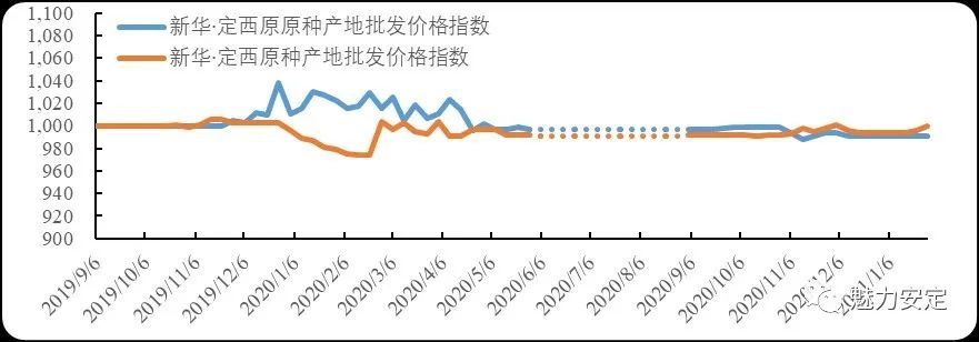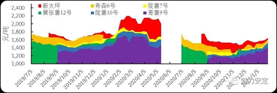 1)定西原种:中晚熟品种产地批发价格呈现小幅上涨