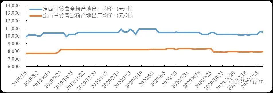 2)定西马铃薯淀粉出厂价格窄幅震荡运行