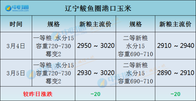 鲅鱼圈港今日玉米价格下跌20元/吨,