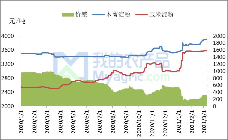 一、木薯淀粉与玉米淀粉价格价差走势分析