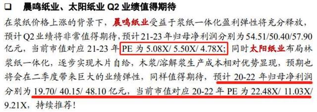 预计晨鸣纸业21年业绩54亿(20年仅17亿),对应PE为5.08倍;太阳纸业21年利润40亿,较20年也是翻倍的增长。