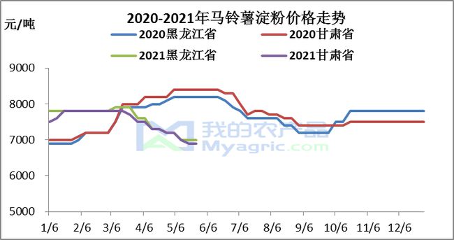 马铃薯淀粉是生产销售季节性周期很强的产品,其价格也受到原料、供需、经济环境、国家政策等各种因素的影响。2021年马铃薯淀粉继春季生产后,四五月份淀粉的价格一路走低。