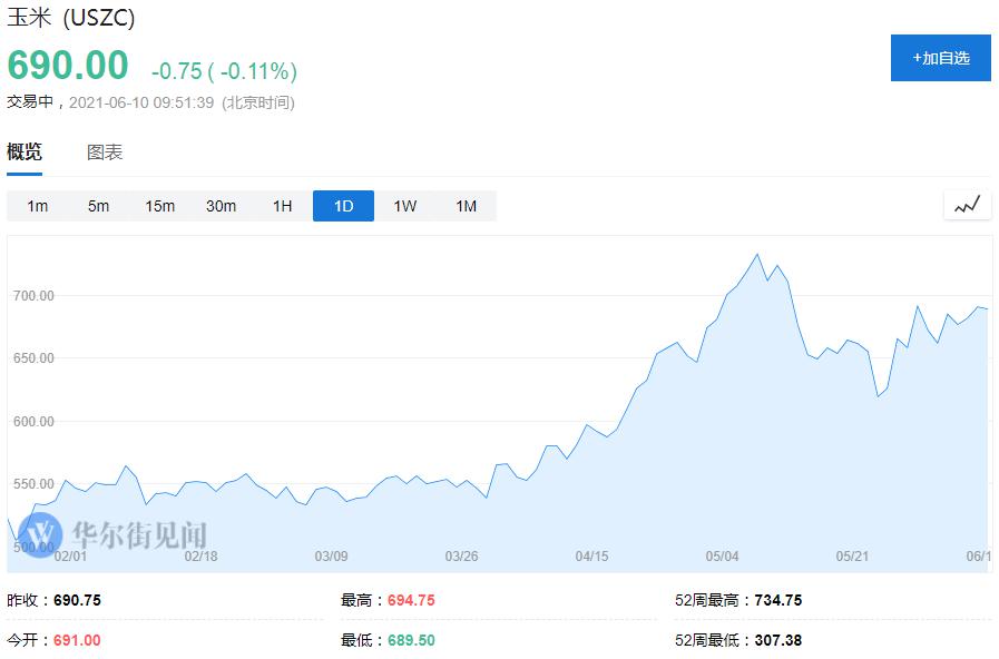 6 月 9 日,芝加哥期货交易所的玉米 7 月合约收报每蒲式耳 6.9075 美元,比前一交易日上涨 1.58%。今年以来,玉米期货价格累计大涨近 40%。