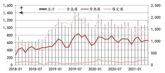 5月中下旬,国内三大交易所联手降温,国常会提及大宗商品价格过快上涨以及美国CPI数据加重了投资者对通胀的预期,美股大幅收跌,宏观氛围转空,系统性风险爆发。黑色出现连续跌停,纸浆期货跟随下跌。下游进入淡季,龙头纸企有调降迹象,市场博弈加剧,文化用纸生产企业多采取减产保价,纸厂和贸易商持有产成品库存较高。国内港口呈现累库状态,5月下旬青岛港和常熟港纸浆库存合计174.1万吨,环比增加10.6万吨。月末,纸浆2109合约跌破6000元/吨。