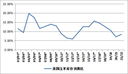 2020/2021年度美玉米库存消费比处于历史低位