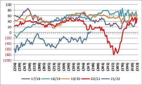 国内本轮玉米、玉米淀粉期价承压下行走势中,玉米淀粉表现明显弱于玉米。玉米淀粉作为玉米的主要加工产品,其不仅受到原料端价格牵制,还同时受到需求及出口等消费端市场因素影响。广州作为南方地区啤酒、饮料、纸箱等集中消费区域,6月突发疫情导致当地及周边区域淀粉季节性新增消费下降,南方淀粉消费企业及贸易商主动减少玉米淀粉成品采购,这也在一定程度上增加了玉米淀粉市场的库存压力,加重了玉米期现市场的弱势氛围。
