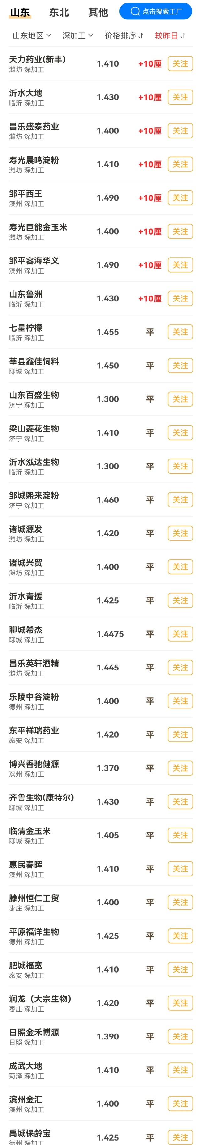 据了解,目前,山东工厂玉米价格维持在1.37~1.49元/斤,目前,8家工厂报价上涨20元/吨,其中,邹平华义容海报价达到了1.49元/斤,行情即将涨破1.5元/斤,而在沂水大地、天力药业以及晨鸣淀粉等工厂报价涨幅维持在20元/吨!