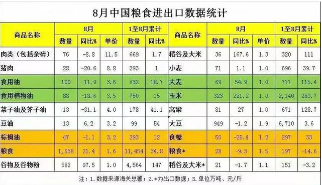 中国1-8月进口玉米2140万吨,小麦大米进口同比增加