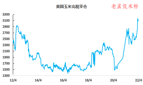 据国粮中心监测数据:2022年4月14日,美玉米理论进口到港卸载后成本3120元/吨,较南港国产玉米价格高230元/吨,连续5周高于国产玉米价格。