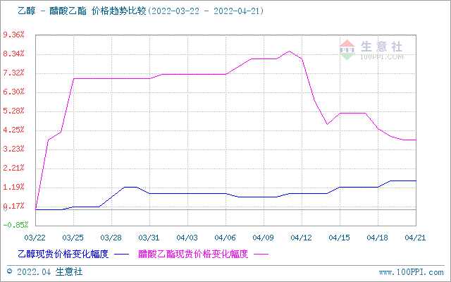 生意社乙醇-醋酸乙酯(下游产品)价格趋势比较图: