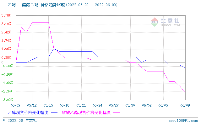 生意社乙醇-醋酸乙酯(下游产品)价格趋势比较图: