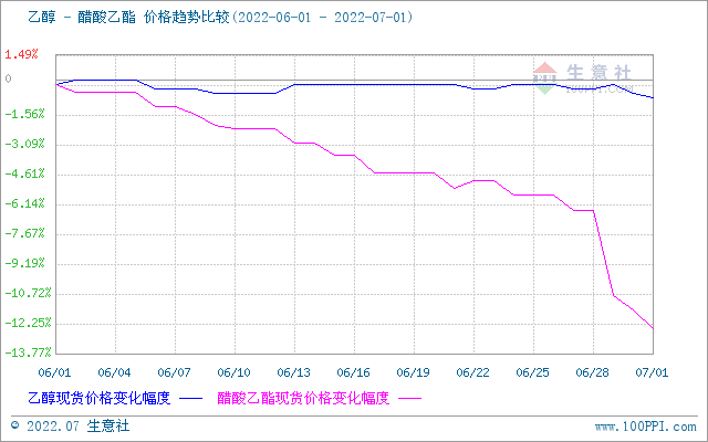 生意社乙醇-醋酸乙酯(下游产品)价格趋势比较图: