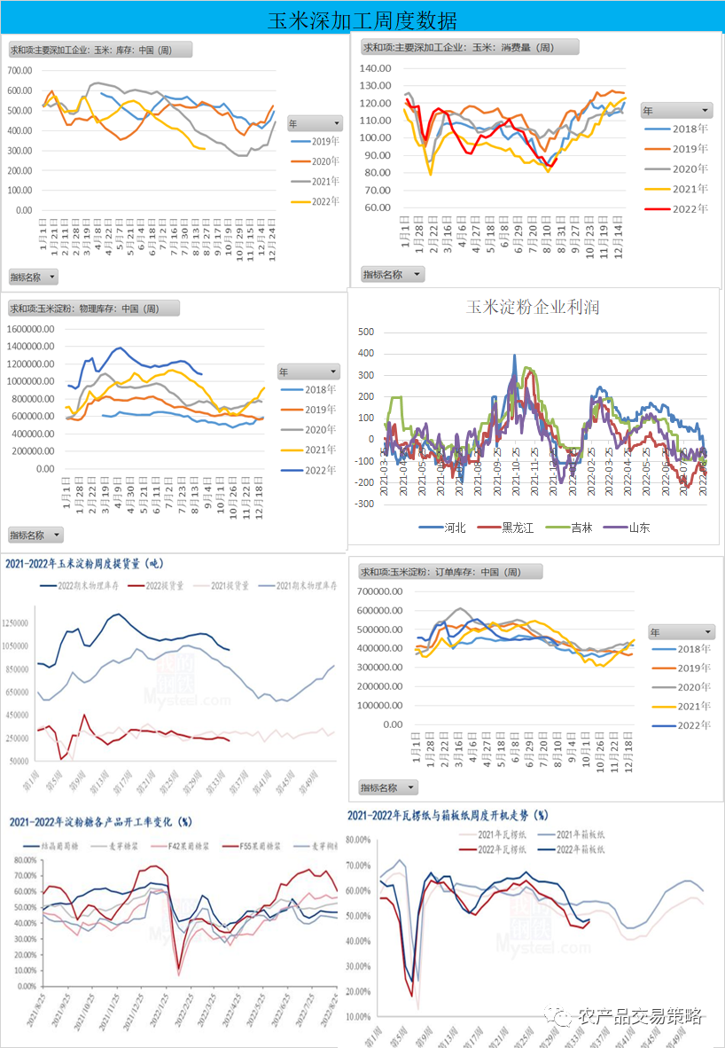但随着夏季检修季结束,开机率逐步回暖,截止到9月2月,主要淀粉企业开机率为47.43%,较8月12日低点回升8.2%个点,但较去年同期要跌10个百分点,因此虽然按往年规律来看,双十一下游食品、造纸包装等行业需求将有明显好转,9月玉米淀粉提货量也逐步走高,整体需求不及往年。这是制约近期玉米价格难以回暖重要的因素。
