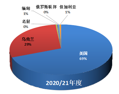 我国大麦对进口的依赖度较高,我国大麦的进口量常年占总消费的80%以上,我国进口大麦主要来自于澳大利亚、法国、加拿大、阿根廷和乌克兰,2018年我国开始对澳大利亚进口大麦进行双反调查,导致澳麦进口数量大幅下降,2020年我国正式对澳麦征收双反惩罚关税,澳麦进口基本停滞,加拿大、乌克兰、法国和阿根廷进口量占比增加,其中2021/22年度进口大麦中,阿根廷占比最高,为31%。