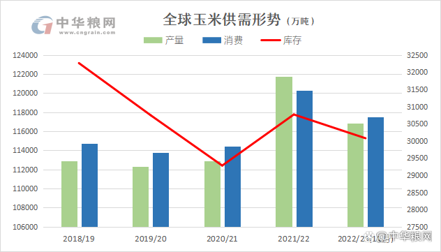 玉米是全球第一大粮食作物,2022/23年度全球玉米产需基本保持平衡,产量、消费和库存均比上一年度减少,进口和出口也呈现下降趋势。