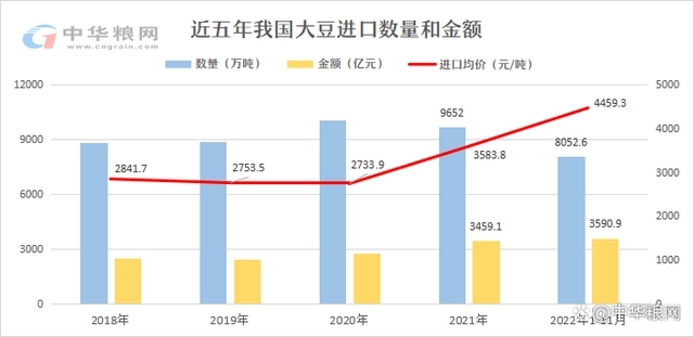 我国粮食进口超1.3亿吨!11月大豆进口增长78%