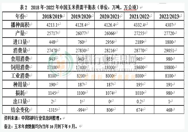 2022年,中国玉米播种面积43070千公顷,比上年度减少254千公顷,降0.6%;单位面积产量每公顷6436公斤,比上年度增加145公斤,增2.3%;总产量27720万吨,比上年度增加465万吨,增1.7%。2022/23年度玉米生产预测数据据此调整,消费和出口预测值与上月保持一致,年度玉米结余变化468万吨,比上月预测值上调189万吨。
